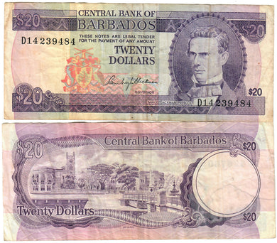 Barbados 20 Dollars 1973 F/VF "Blackman"