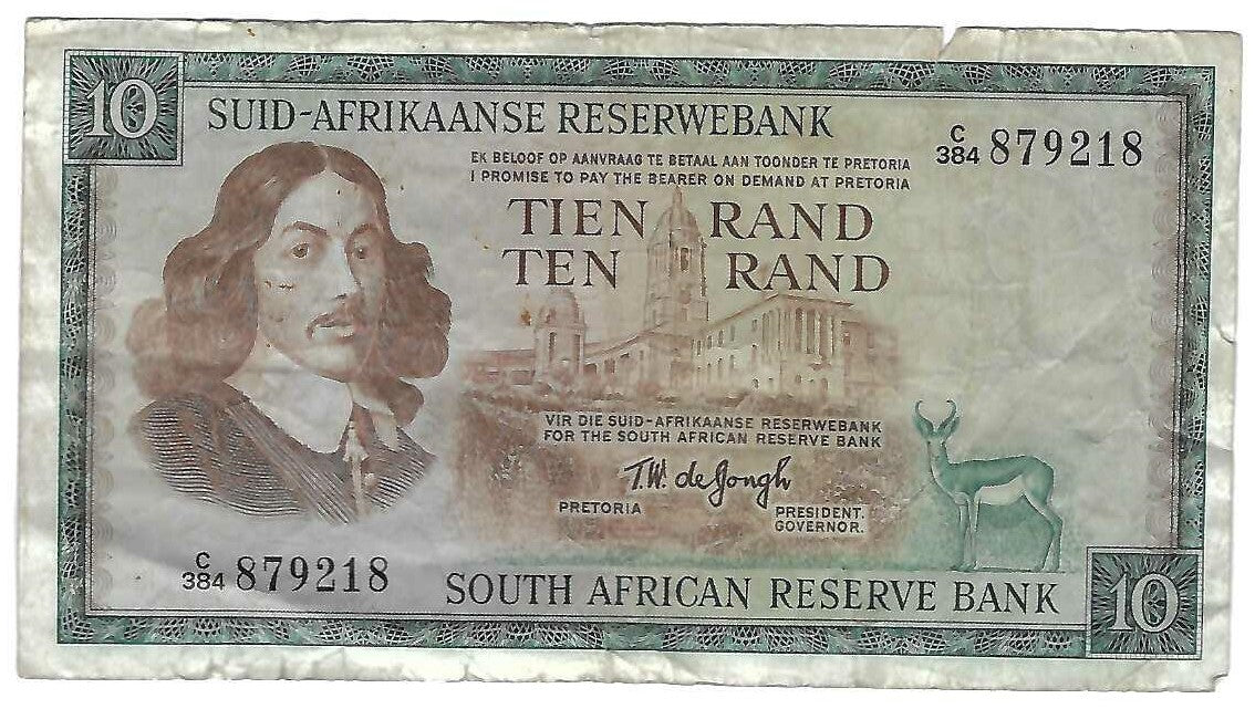 South Africa 10 Rand 1975 VF "de Jongh"