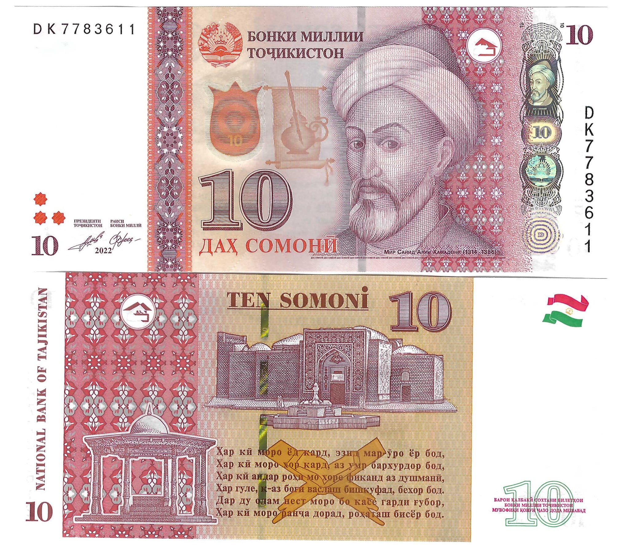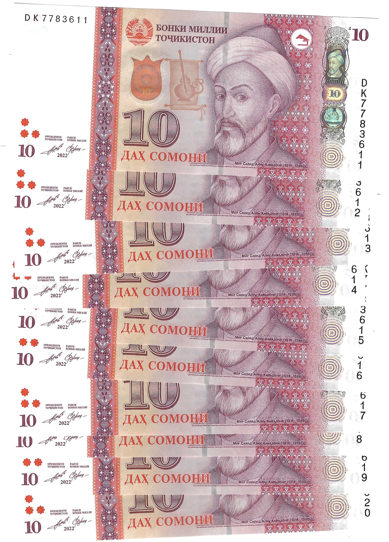 Tajikistan 10x 10 Somoni 2022 UNC